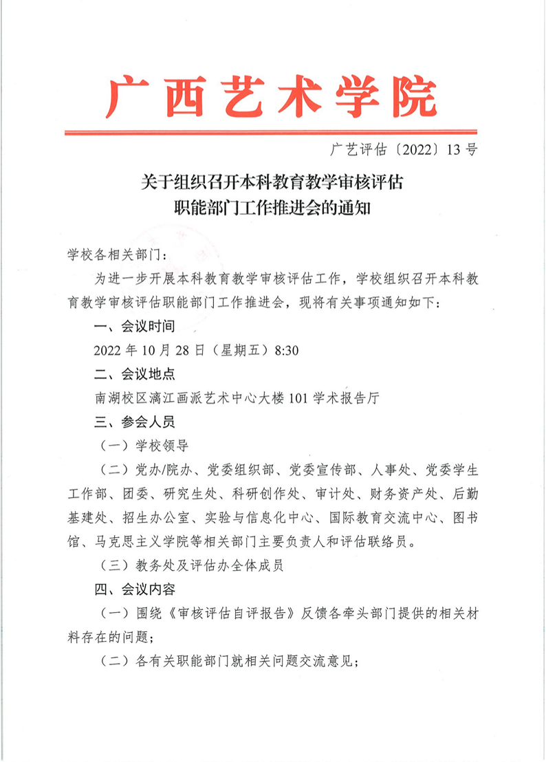 广艺评估〔2022〕13号关于组织召开本科教育教学审核评估职能部门工作推进会的通知