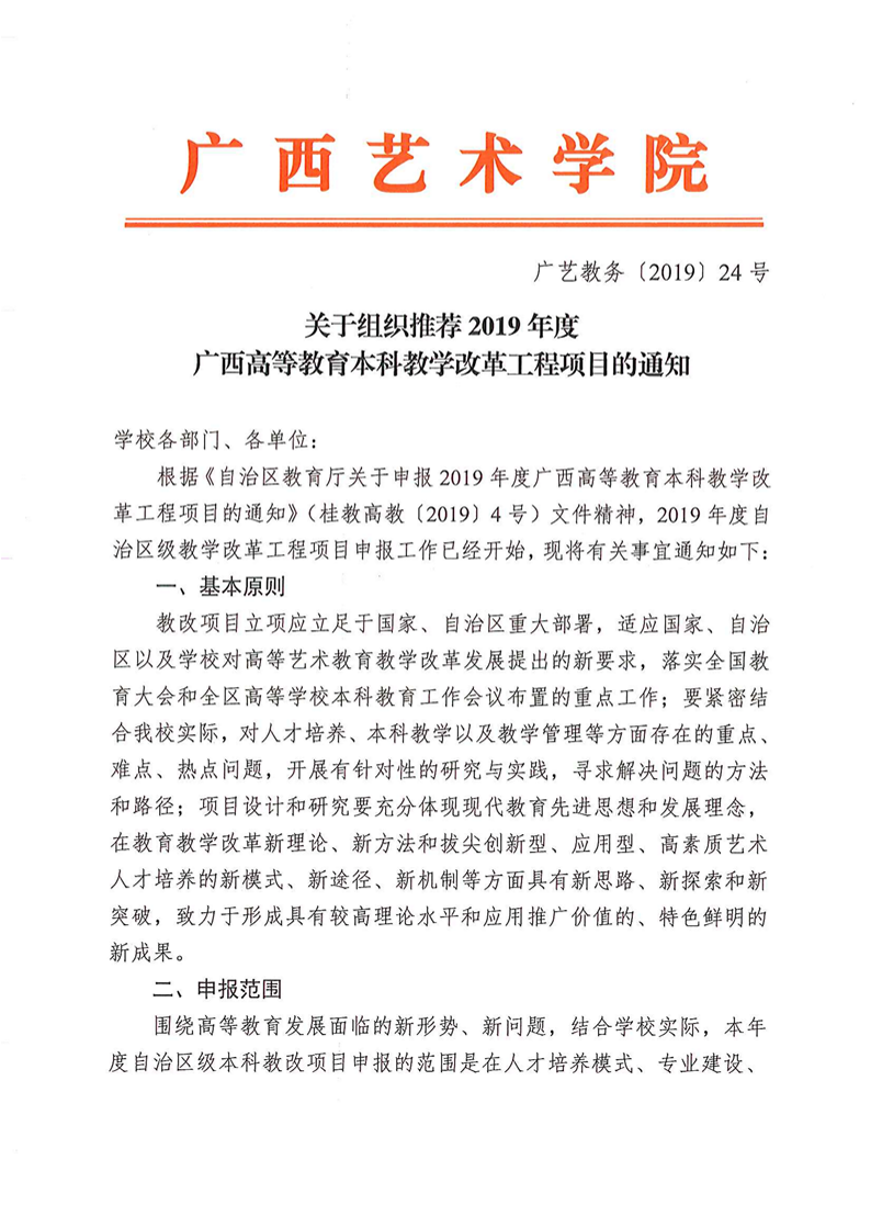 广艺教务〔2019〕24号 关于开展2019年度广西高等教育本科教学改革工程项目申报工作的通知