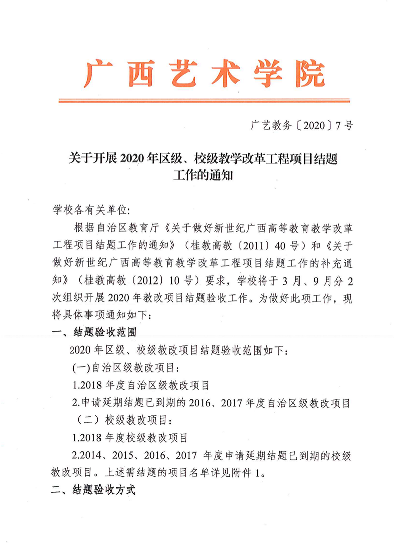 广艺教务〔2020〕7号.关于开展2020年区级、校级教学改革工程项目结题工作的通知 来源: 作者: 时间:2020-01-19 20:39 点击:次 字号:【小 大】 附件8教改报账流程图.pdf 分享到: 打印正文 返回顶部
