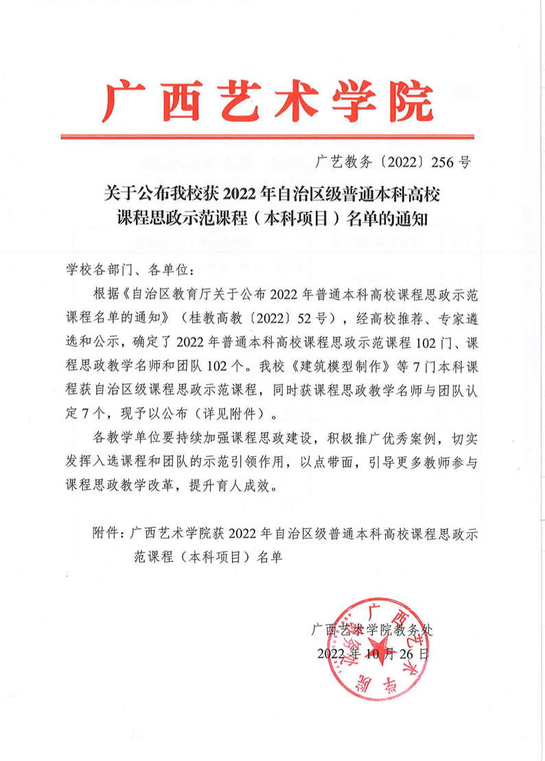 广艺教务〔2022〕256号 关于公布我校获2022年自治区级普通本科高校课程思政示范课程(本科项目)名单的通知 来源: 作者: 时间:2022-10-26 19:51 点击:次 字号:【小 大】 分享到: 打印正文 返回顶部