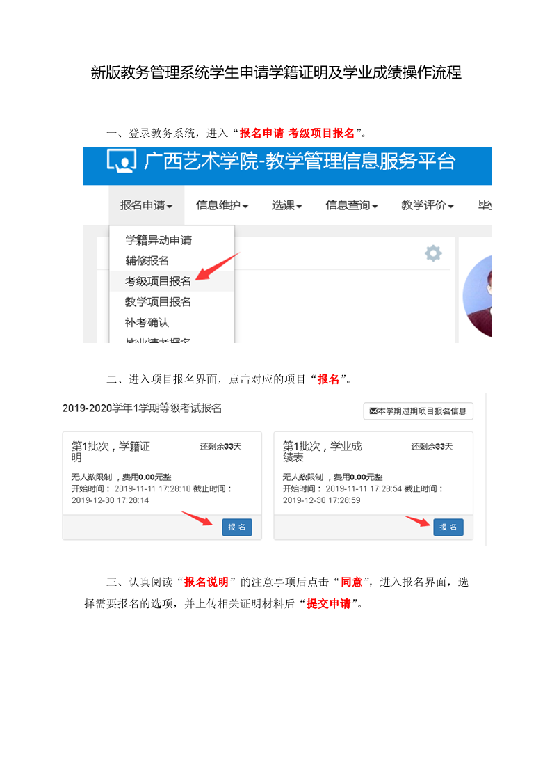 【学生】教务管理系统本专科生申请学籍证明及学业成绩操作流程